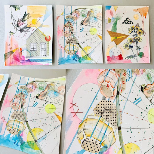 Hi all, I talked with Kimberly Kaiser about her lovely mixed media pieces she has been posting on her Instagram. Love how she captures childhood. She is a mother, artist, and educator. To see more of her art on Instagram @kimberlykaiserart.