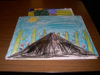 Back in the day when I taught elementary art I would put these large size crayons I made above each group of students’ table. I had 4 students to teach table. That way I could do my seating chart. I no longer teach elementary school, but wanted to share how I made these. The end of the crayon is just a styrofoam cup that I got for free from the lovely lunchroom ladies. The body of the crayon is just a piece of poster board wrapped into a cylinder. I stuffed the cylinder with old newspaper so that it would hold it shape. Then I glued the cup and the body together using hot glue. I would make the cylinder slightly smaller then the opening of the cup so it would fit tight. Then I would close the end off by hot gluing on a poster board circle at the bottom. Then I would paint the crayons, and use construction paper for a wrapper. The color names I made those in Adobe Indesign. I’m including a PDF to download if you would like to use them. I really think it helped me with the volume of student in elementary to have a seating chart for attendance and for behavior. I placed my son’s guitar next to it so you could get a sense of the size.