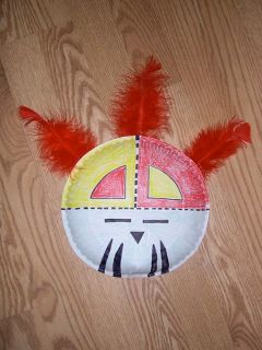 Hopi Kachina masks use great colors and geometric shapes. There is a fascinating story behind their masks. This students make their own symbols and write their own stories about their masks. Here is a close up of the one I made as an example and students work.